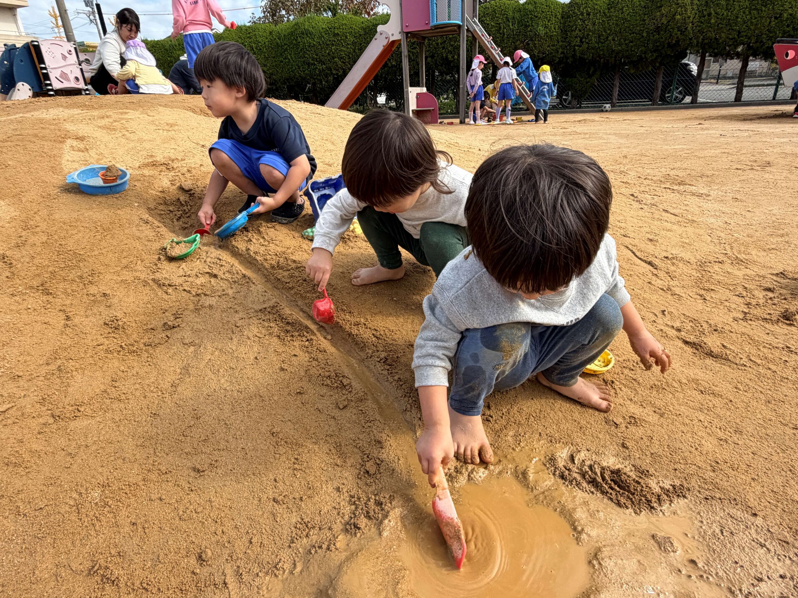 リューアルした土がたっぷりの園庭で遊ぼう!外は寒いので温かい服装でいらしてくださいね!